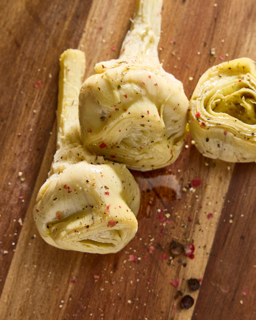 • Corazones de alcachofa tiernos aliñados con aceite de oliva
