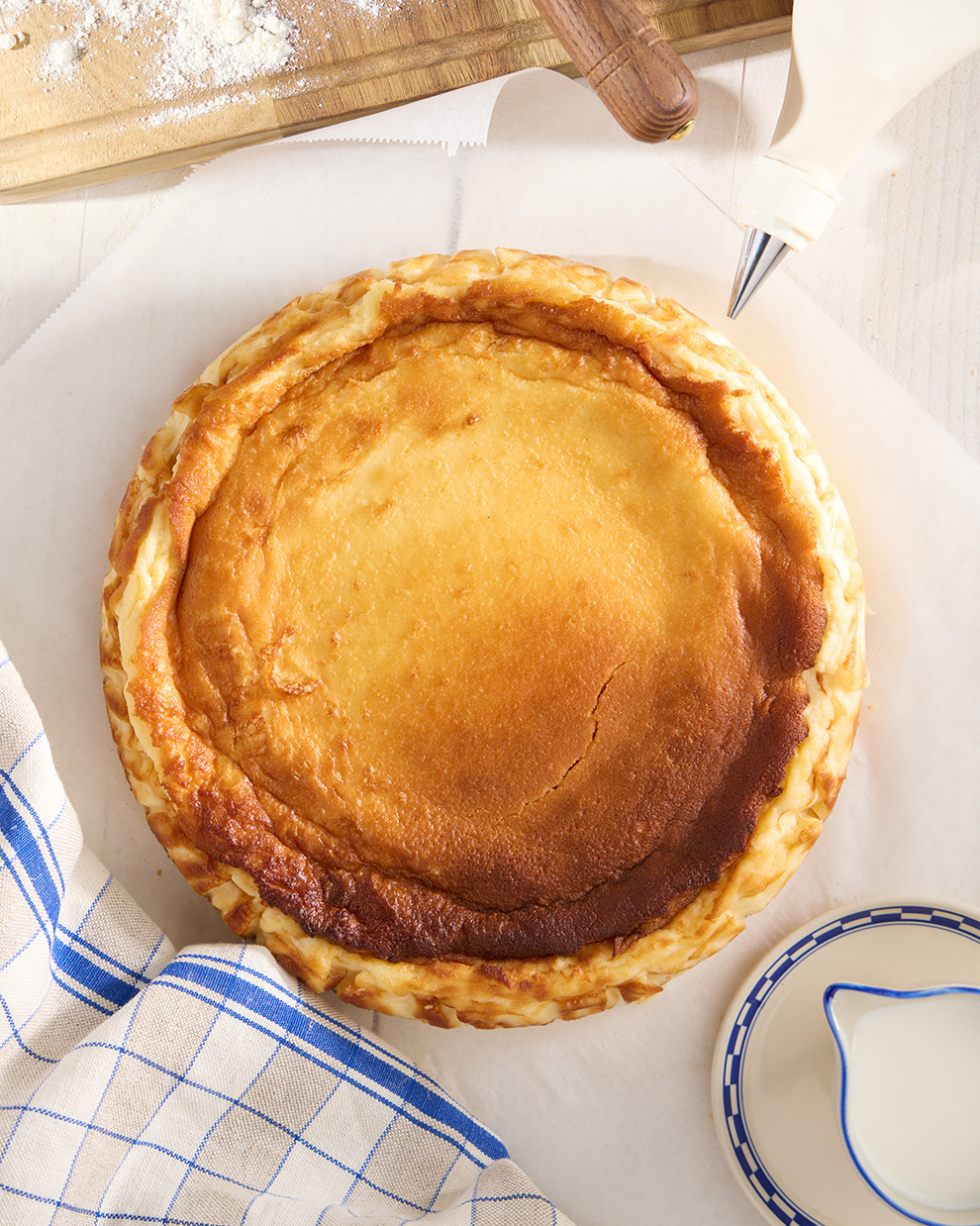 El corazón de esta tarta está en su materia prima: mezcla equilibrada de quesos frescos, cremosos y aromáticos que aportan intensidad, untuosidad y ese sabor lácteo profundo que enamora desde el primer bocado. Sin artificios ni ingredientes innecesarios: solo calidad y tradición.
