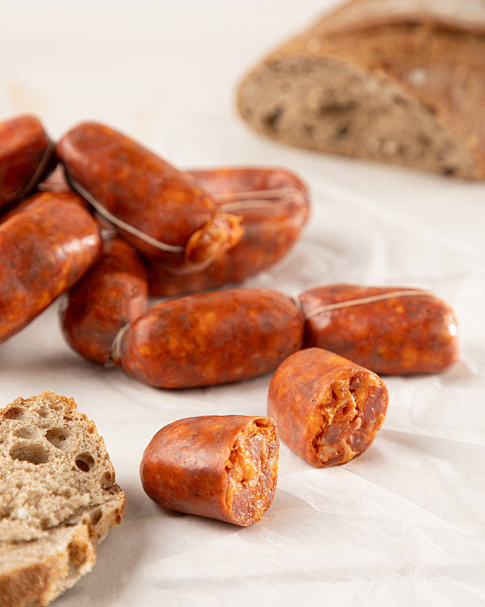 “Chorizo bola oreado: esencia serrana, aroma limpio y sabor redondo.”