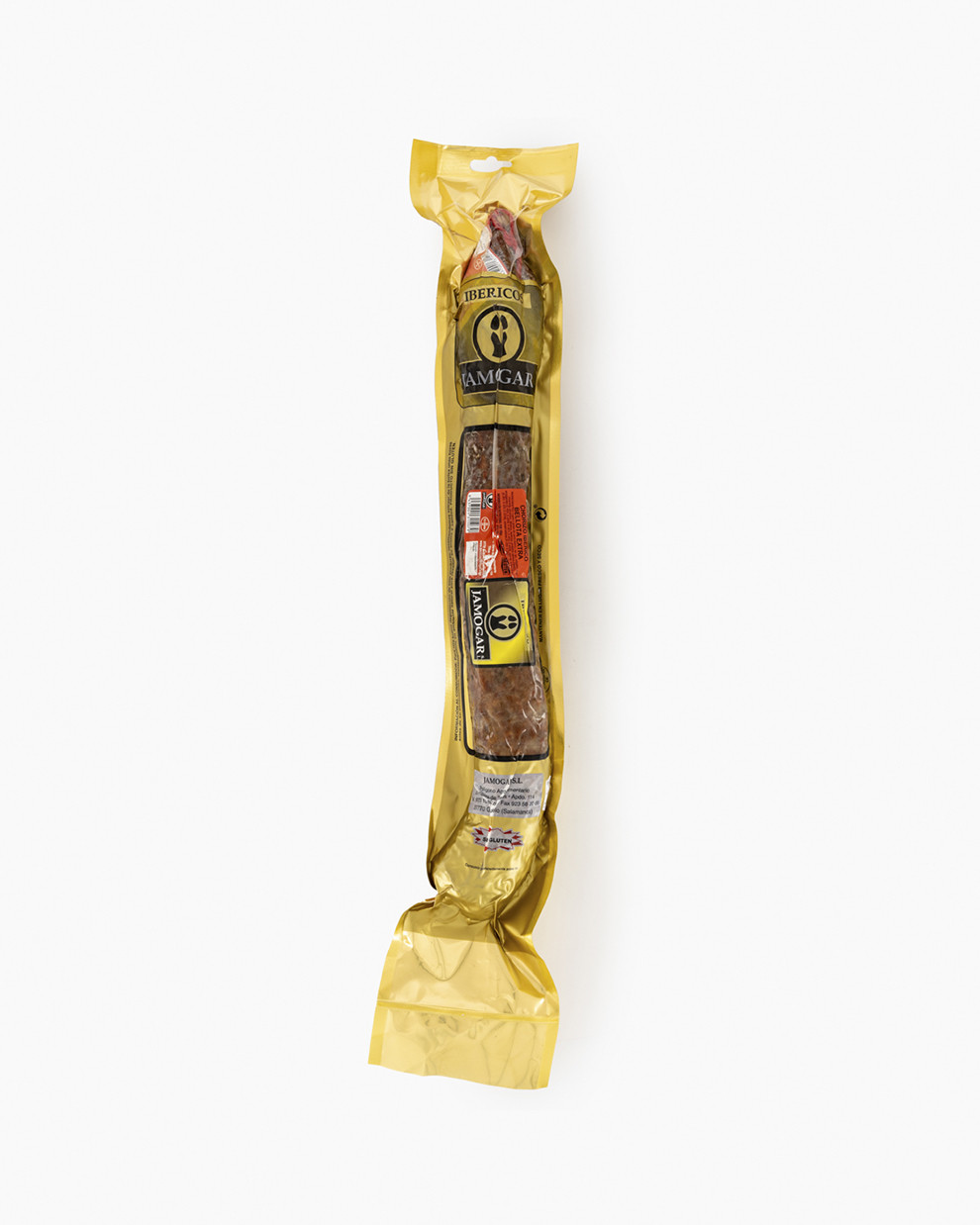 En la sierra salmantina, a más de 1.000 m de altitud, el aire frío y seco de Guijuelo permite una curación lenta y natural.Los maestros de Jamogar elaboran este chorizo de bellota Extra con carnes nobles seleccionadas, picado regular y adobo equilibrado de pimentón, ajo y sal.