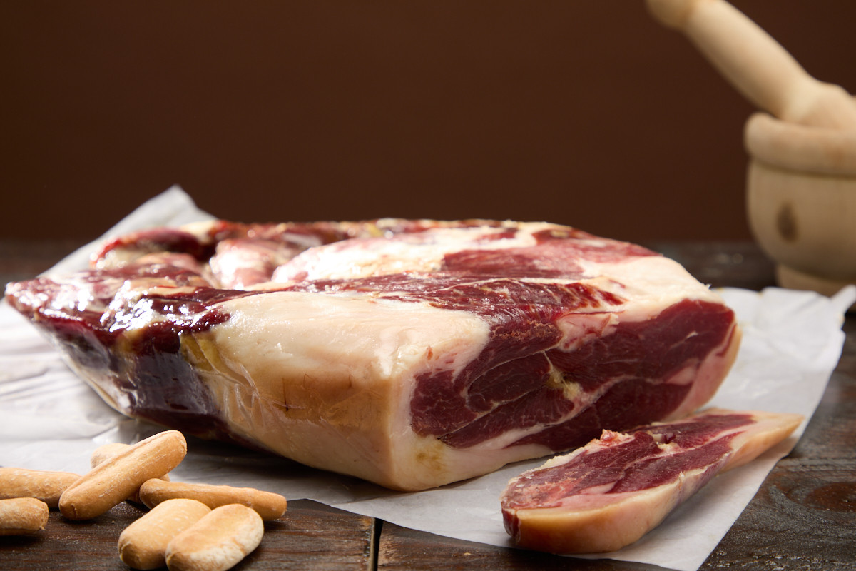 Cada pieza madura de forma tradicional aprovechando el clima frío y seco de Guijuelo, logrando textura melosa, aroma limpio y sabor elegante.