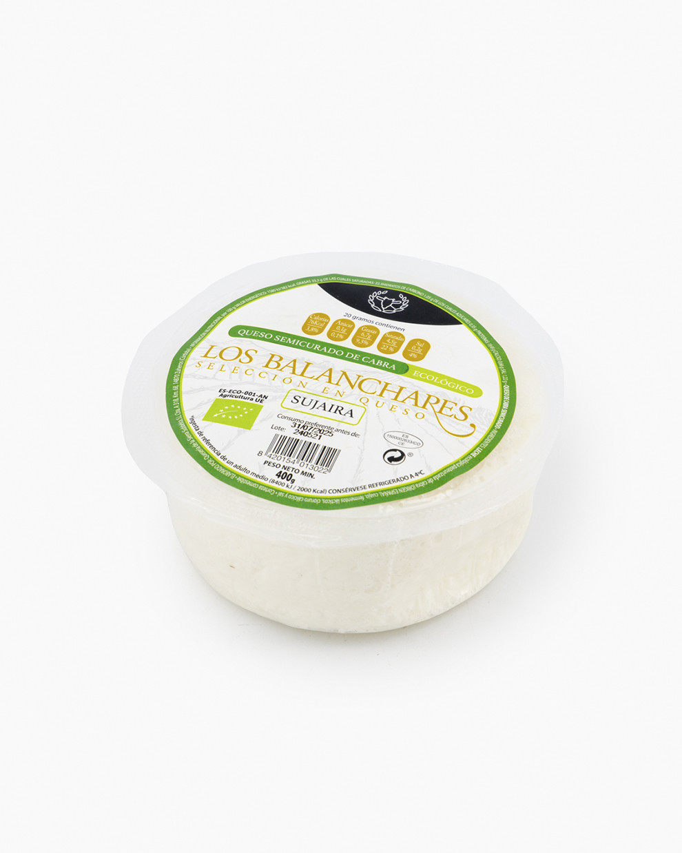 🏷️ Ficha de Producto: Queso de Cabra Ecológico Semicurado – Los Balanchares (pieza mínima 400 g)