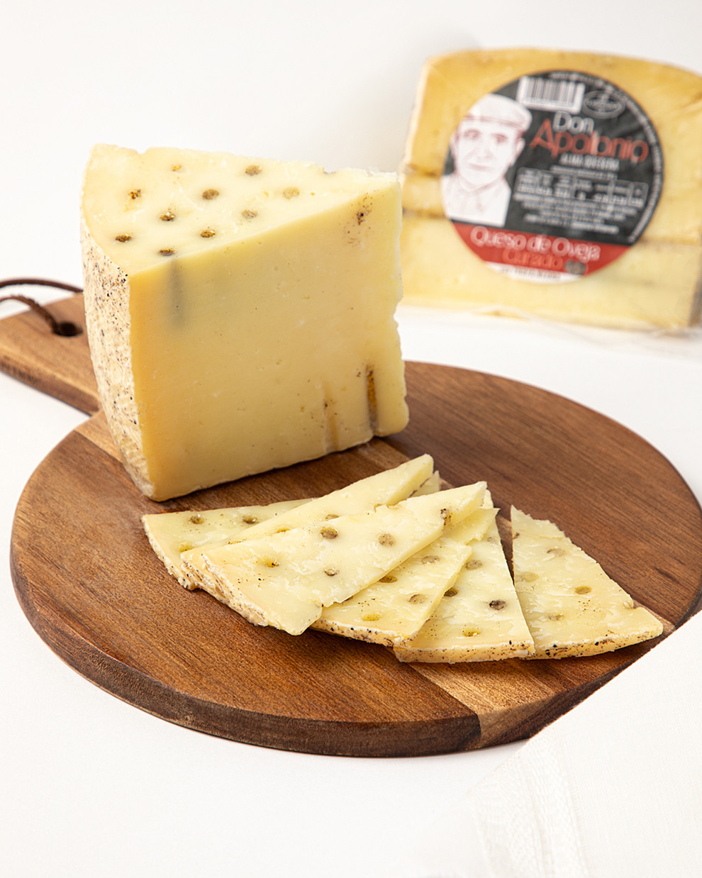 Quesos Don Apolonio es una empresa familiar con más de 50 años de experiencia en la elaboración artesanal de quesos de oveja en La Mancha (Ciudad Real), tierra de pastores, molinos y tradiciones centenarias. Su filosofía combina el respeto por la receta tradicional con la búsqueda de nuevas experiencias gastronómicas, como este queso curado con boletus que une intensidad y carácter manchego con una nota contemporánea.